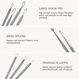 - 6 Tools for a Clearer Complexion: 6 differently sized bottlenecks, needles, and tweezers effectively help you handle pimples and acne of different sizes and types